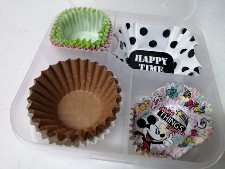 固定式の仕切りなのでカップを複数重ねてもずれないし、様々な大きさのおかずカップが収納出来るので整頓下手な筆者にとって神アイテムだと感じました。