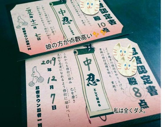忍者修行を終えると認定書が貰えて点数によって上忍や中忍などのランクが決まります。