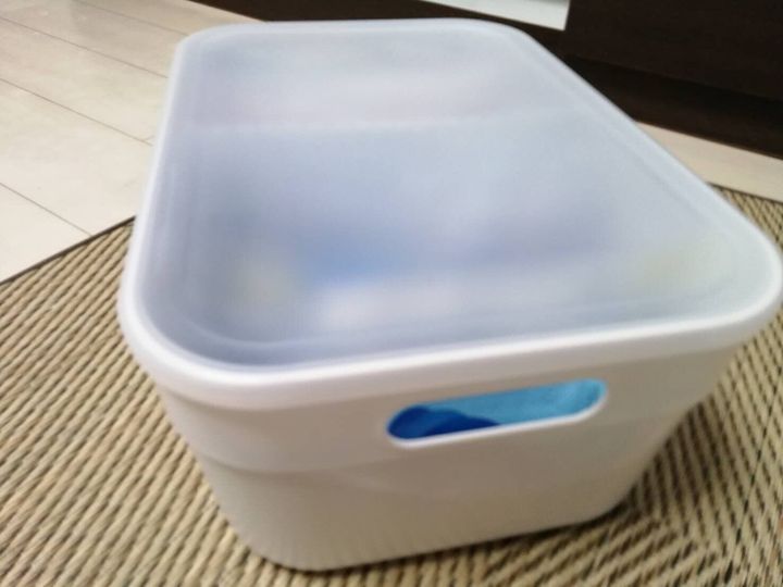 フタは半透明なので中身がわかりやすいし、フタがある事で重ねて収納も出来て便利です。