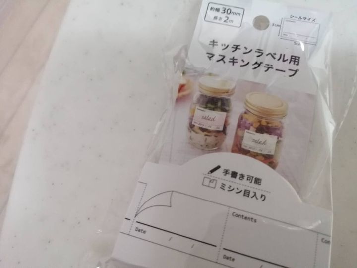 100均で購入したマスキングテープを使用しました(下味冷凍や作り置きに利用しようと思っていた物です)下記の画像参照してください。