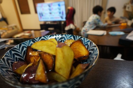 夕飯前に大学芋を出すというわけのわからないことをしましたが、これは本当に一瞬でなくなりました。笑