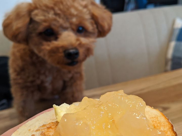 このおいしそうなあまい香りとつやつやの見た目に、わんこも目が離せない模様ですよ。