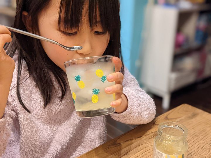 と、氷に炭酸水、日向夏ジャムをおとして。甘みがもう少し欲しかったのではちみつも垂らしてみましたよ。