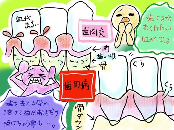歯が動き出したらもう既にかなり進行しているので、歯肉炎で血が出るくらいの時から受診、対応した方が安心かもしれません。