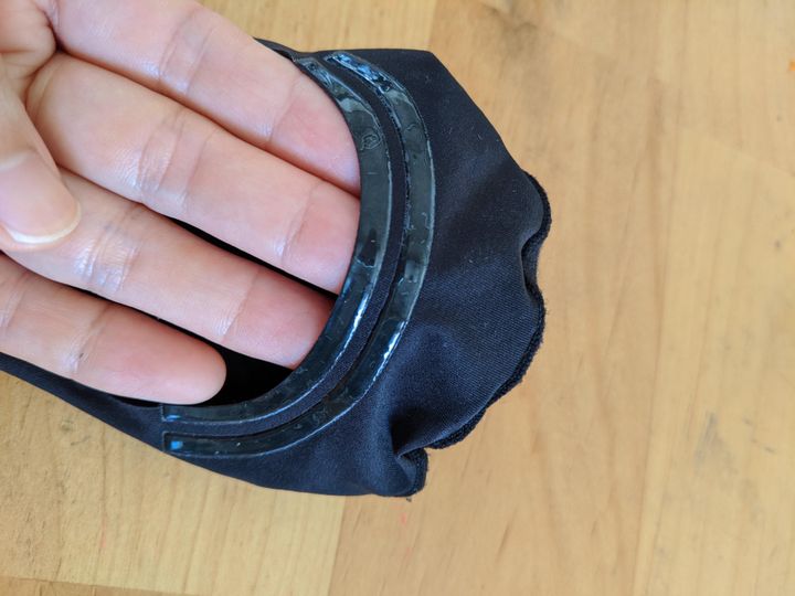 履いてみると、シリコン部分がぴっちりくっつくのが感じられます。これは良いのでは、と期待値が上がりますが、100均のフットカバーも靴を履くまでは何の問題も無いのです。靴を履いてからが勝負。