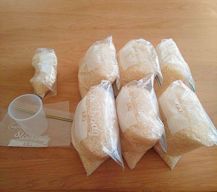 【1回分ずつ計量して空気を抜いて保存袋に入れる】ようにしました