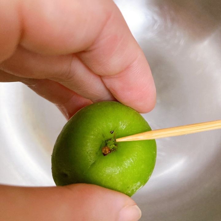 【作業3】ヘタを取り除きながら、青梅の状態を確認する