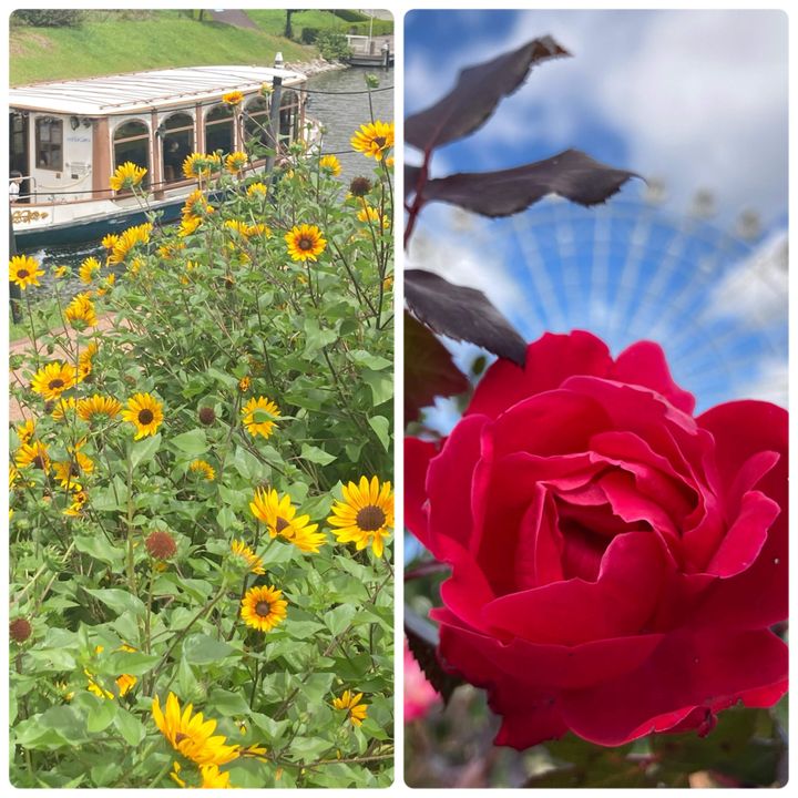 風車の周りには季節ごとに色とりどりの花が植えられていて、このコラボレーションは心を奪われます。