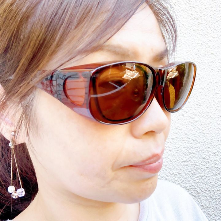 このサングラスはメガネの上からかけるものなので着脱は1秒で完了!何のテクニックもいりません。