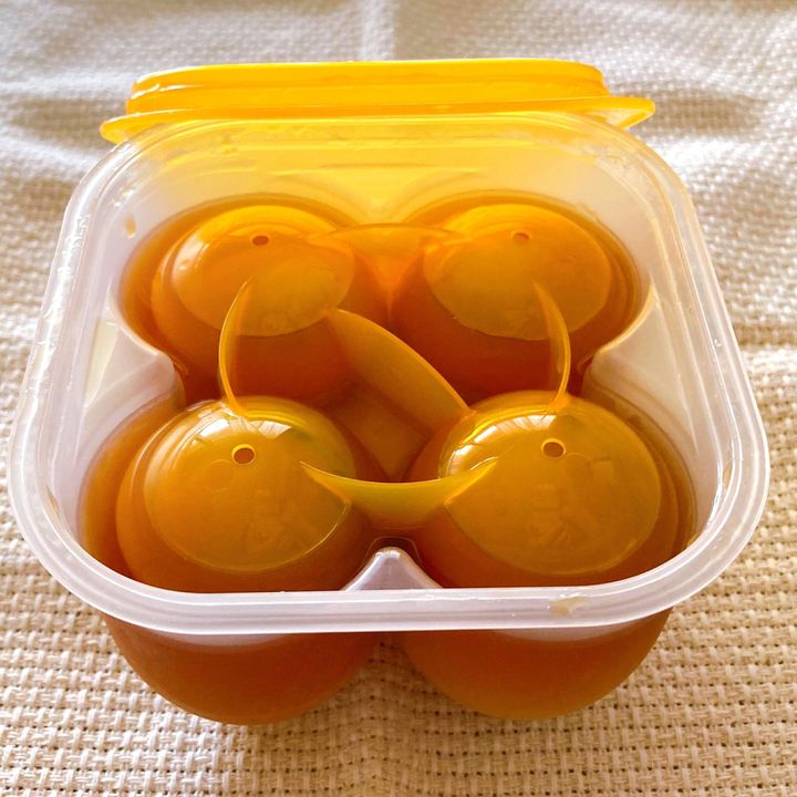 ゆでたまごと少量の調味液を容器にいれてふたをして冷蔵庫で1時間漬け込むとできる優秀な商品。価格は110円。