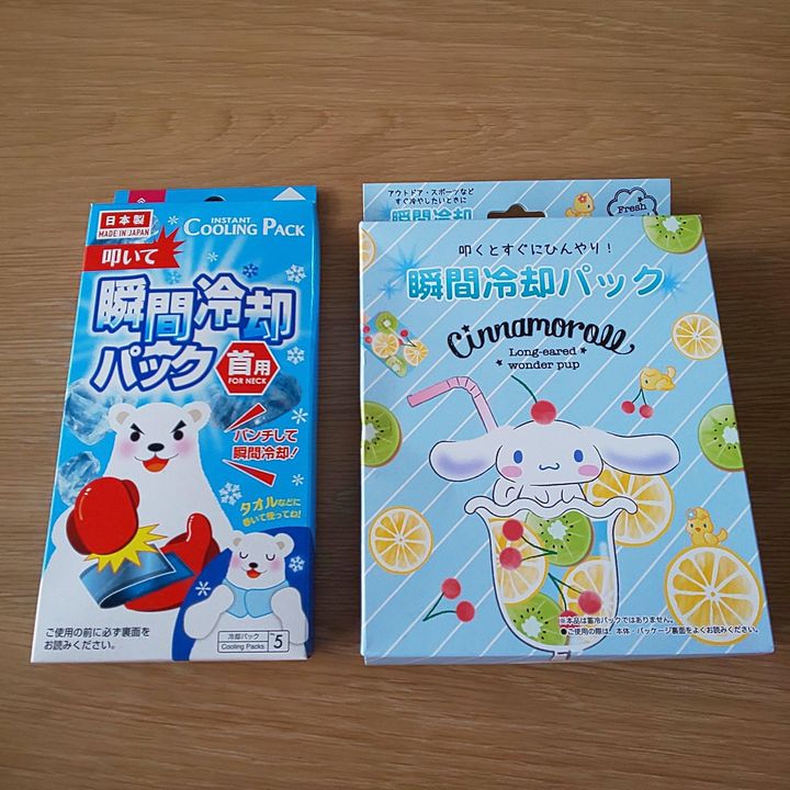 叩いてすぐにひんやりするもので、100円ショップやドラッグストアで販売しています