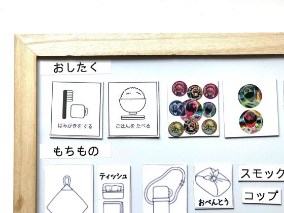 最近は自発的に明日の準備をするようになりましたが、今日なにが必要で…という具体的な内容まで自分で把握できたら、なすくんも準備をするのがラクだろうな。と思って、こんなもの作りました!