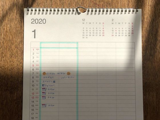 小学校に入学する時にカレンダーは読めた方がいいよ!と先輩ママに教えてもらったので、読んでもらえるようにしました!