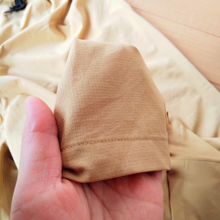 生地はサラサラのポリエステル90%とポリウレタン10%で、撥水加工がされているので小雨くらいならへっちゃらです!