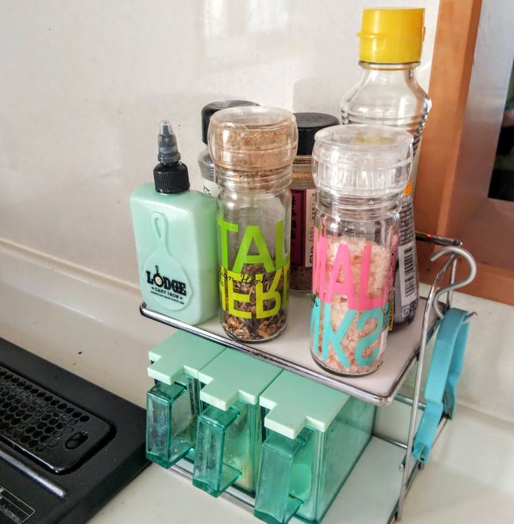 以前はSNSでみたシンプルなキッチンを目指して、調味料ボトルをおしゃれにしてみたり、ラベルを外したりしましたが、自分の性に合わないことに気がつきました。