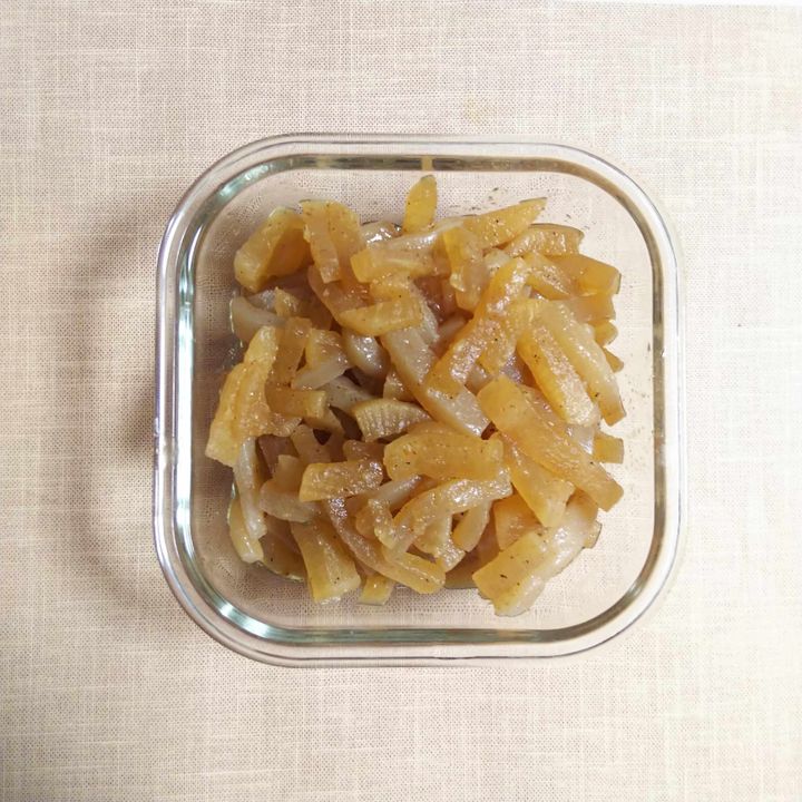 3 半透明になってきたら、砂糖→みりん→塩の順番に入れながらさらに炒めます