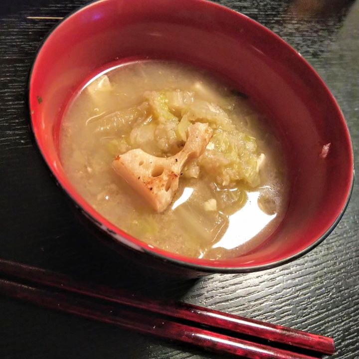 いつものお味噌汁に擦ったレンコンを入れるだけで、食感が楽しいお味噌汁に大変身!