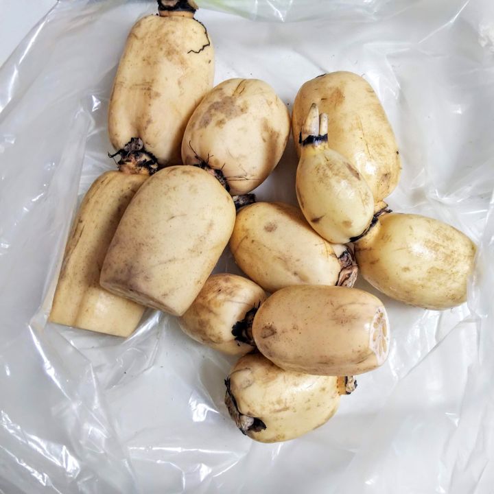 3、レンコンの水気を取り、片栗粉を軽くまぶしておく