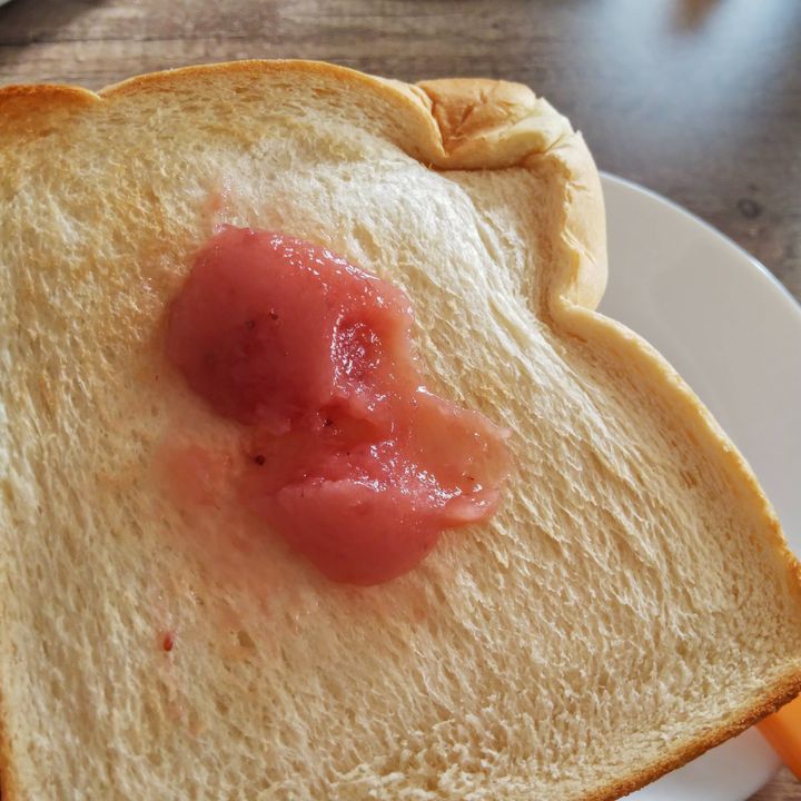 バターが混ざっているので、イチゴジャムと違ってパステルカラーっぽい色味がかわいい。