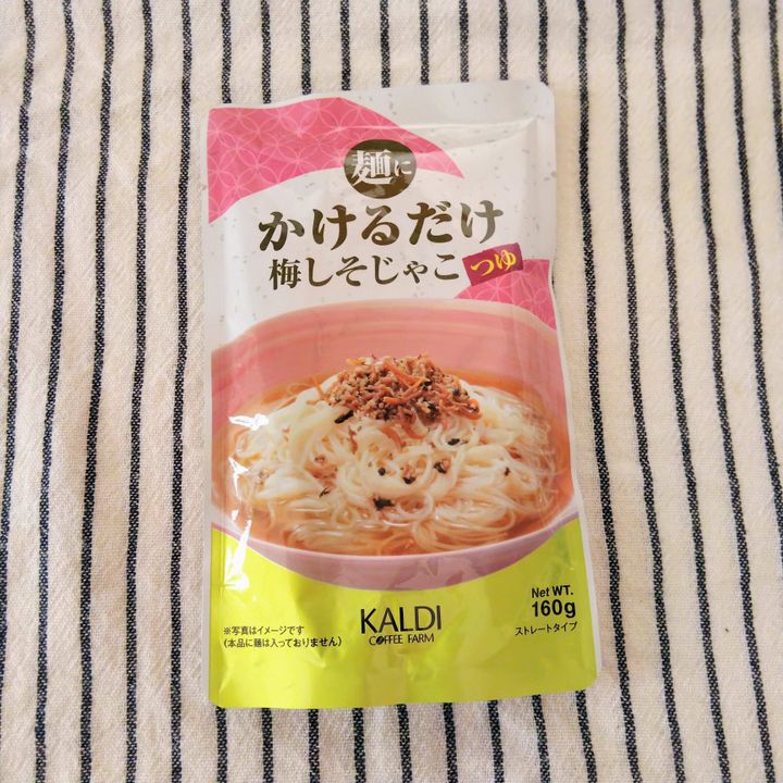 こちらはカルディオリジナル「麺にかけるだけ」シリーズの一つ、梅しそじゃこ味 158円(一人前)です。