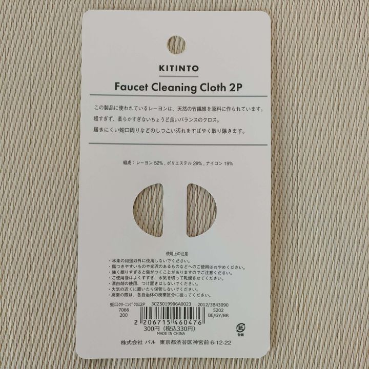 3COINSの「KITINTO」シリーズにある、「蛇口クリーニングクロス2p」は330円(税込)で販売されている、お掃除アイテム。