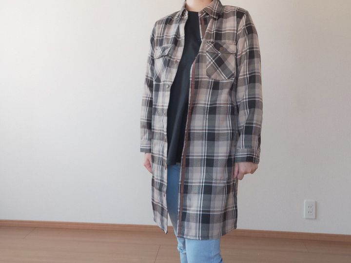 ワークマンで買えるの?!とびっくりするくらい、オシャレなチェックのシャツワンピースだったので、見つけた瞬間に即買いでした。