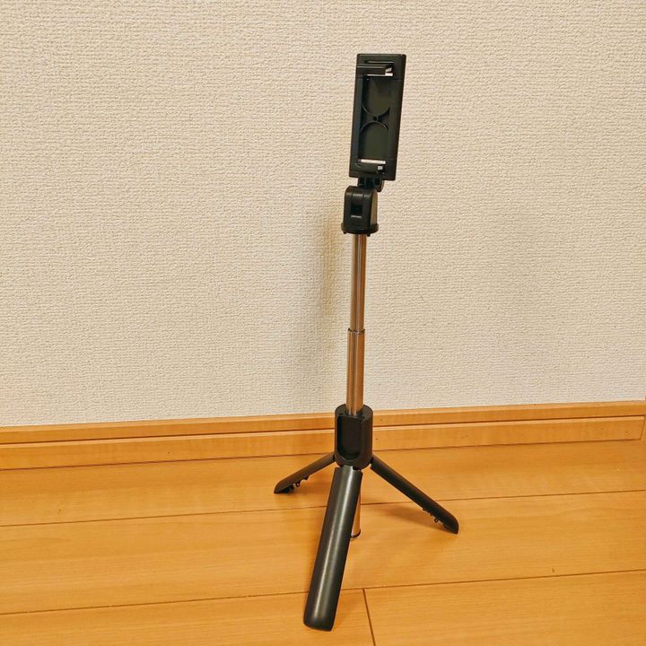 さらに自撮り棒として持って撮影するのはもちろん、なんと三脚にして立てて撮影することもできるのです。