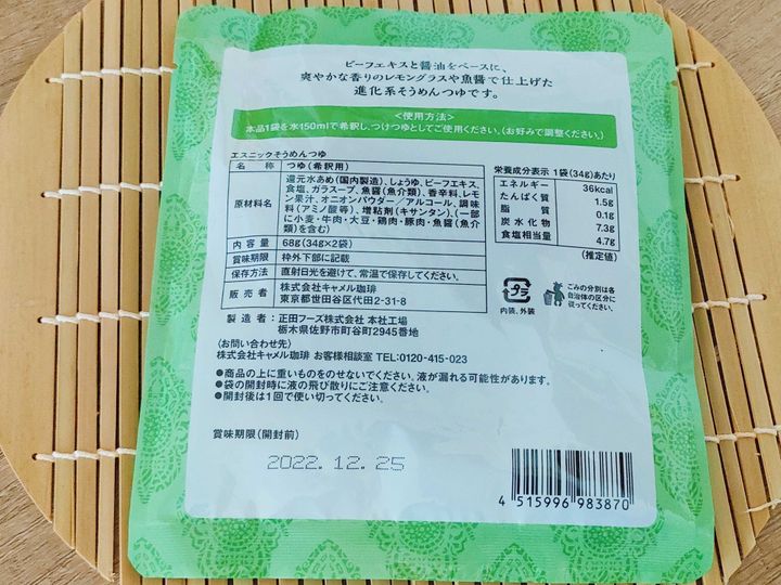 こちらが「エスニック素麺つゆ」180円(税込)です。二袋入り。