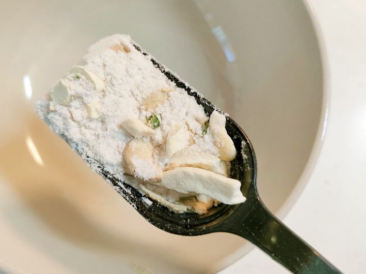 大さじすりきり一杯の素を袋から取り出してみたら…こんなに具だくさんで正直驚きました。