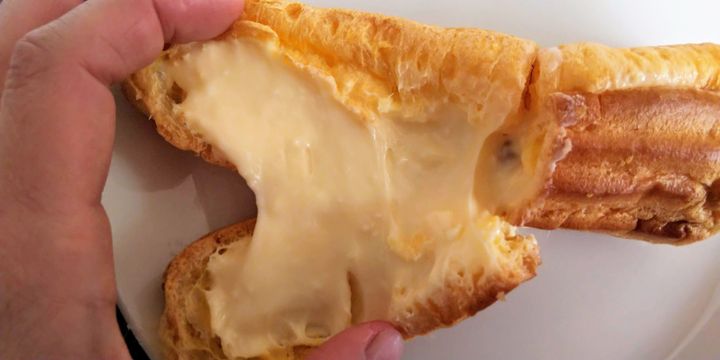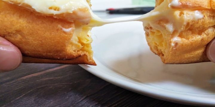 少し固めのシュー生地で長細く作られています。中にはチーズがたっぷり入っている模様。