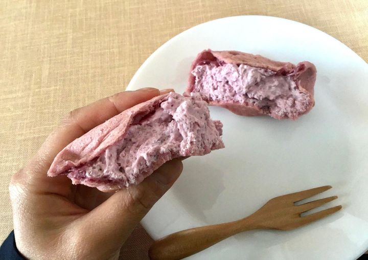 ブルーベリーの綺麗な紫色で、クリームよりも酸味が強い気がします。けど、イヤな酸味じゃない〜!