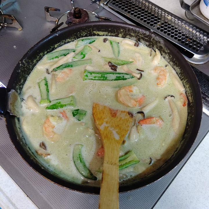ココナッツミルクを入れてひと煮立ち。