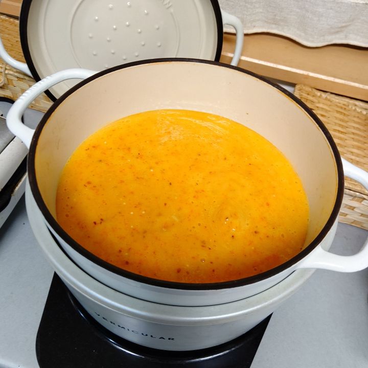 ② ミキサーに掛けたら、お鍋にうつして