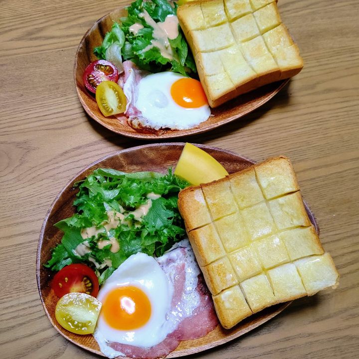 朝ごはんに厚切りトーストと