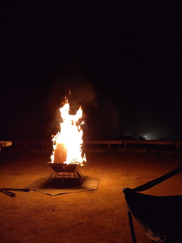 暗くなって、焚き火を見ていると