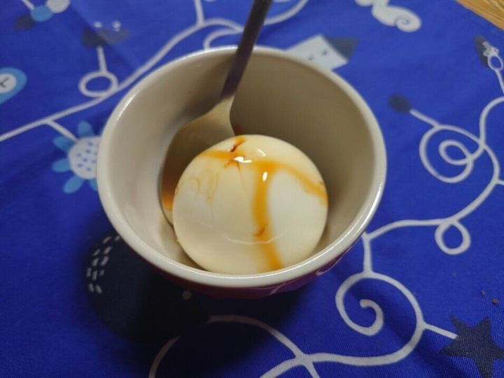 つまようじなどをプチッと刺すと、つるんとプリンが出てきます。