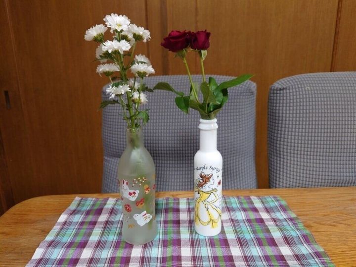 左は日本酒の瓶、右はメープルシロップの瓶です。