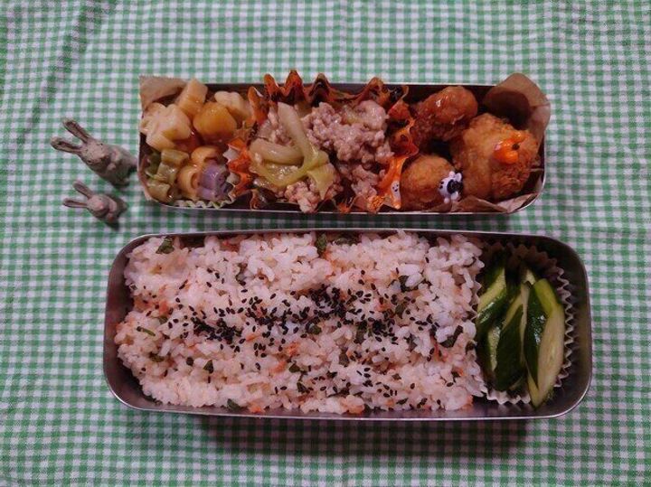 この日は学校に行った後そのままバイトに行く日だったので、炭水化物多めのお弁当になりました。