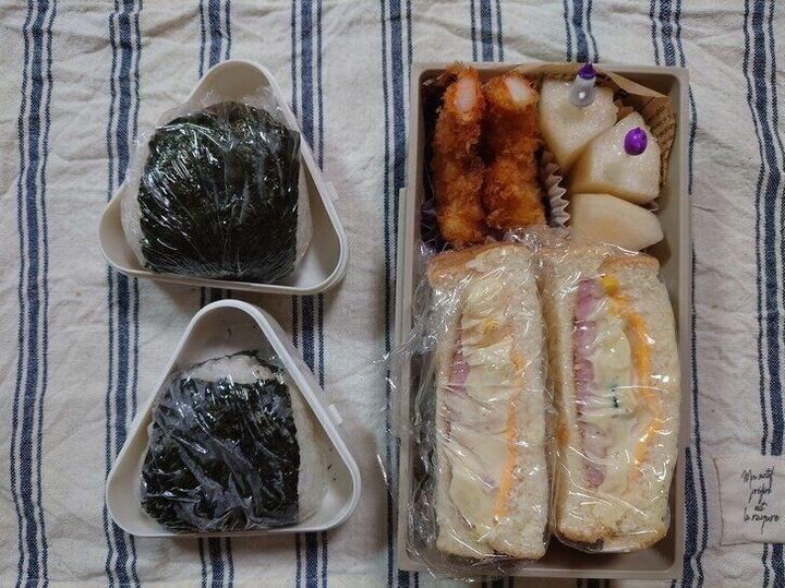 バイト用の弁当です。食べる時間があまりないので、すぐに食べられるものを用意します。
