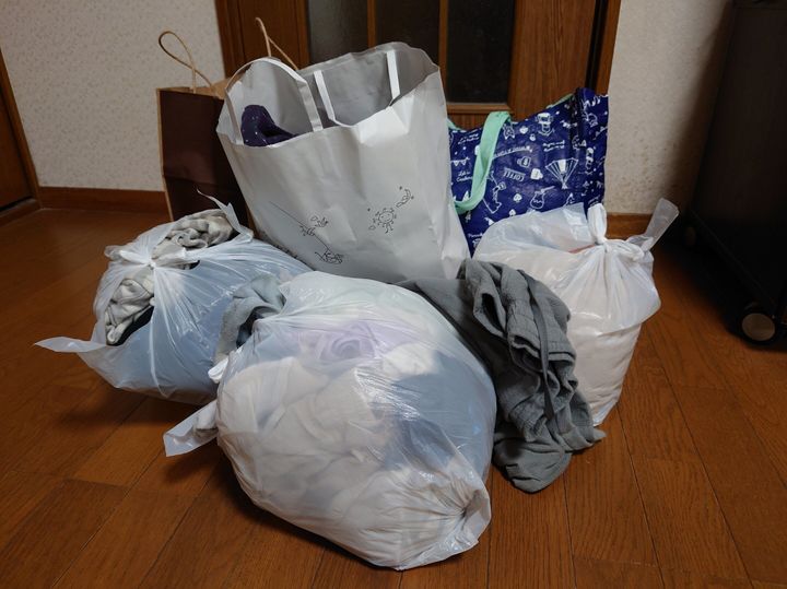 まだまだ、小さいと思っていたわが子ですがあっという間です。三子はすでに170センチくらいになっていて(大人サイズですね)、服のサイズはLサイズが主流になりました。そこで、着られなくなった服で人に譲れそうなものは譲ることにして、それ以外は捨てました。四子のものも同じように譲るものと捨てるものとに分けました。