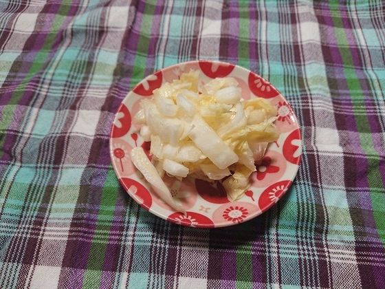 キュウリと白菜を千切りにして塩こうじで揉んで、ちょっとだけ水気が出るまで待ちます。