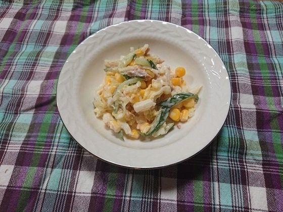 水気を切ってコーン・ツナ・マヨネーズを混ぜました。
