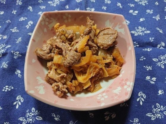 白菜と豚肉を炒めて、塩コショウと焼き肉のたれで味付けします。