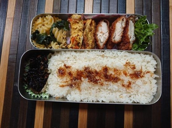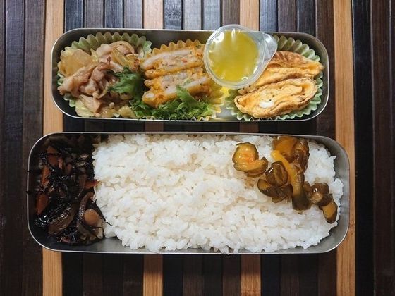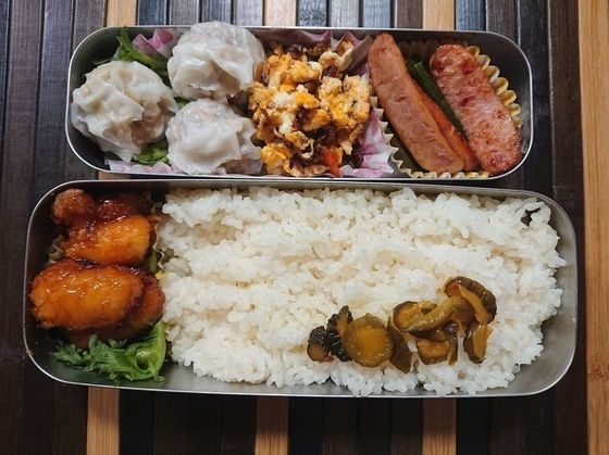 中学生男子は本当に肉肉しいお弁当が好きなので…ついついお肉系をどっさり入れてしまいます(お弁当が一つになると息子に甘くなります)