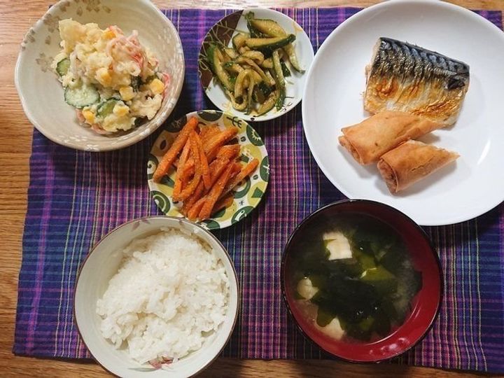 サバは業務スーパーの冷凍魚。解凍してドリップをしっかりふき取ればとても美味しいです。ただ…冷凍魚は小さいので、それだけではおかずとして足りない(涙)