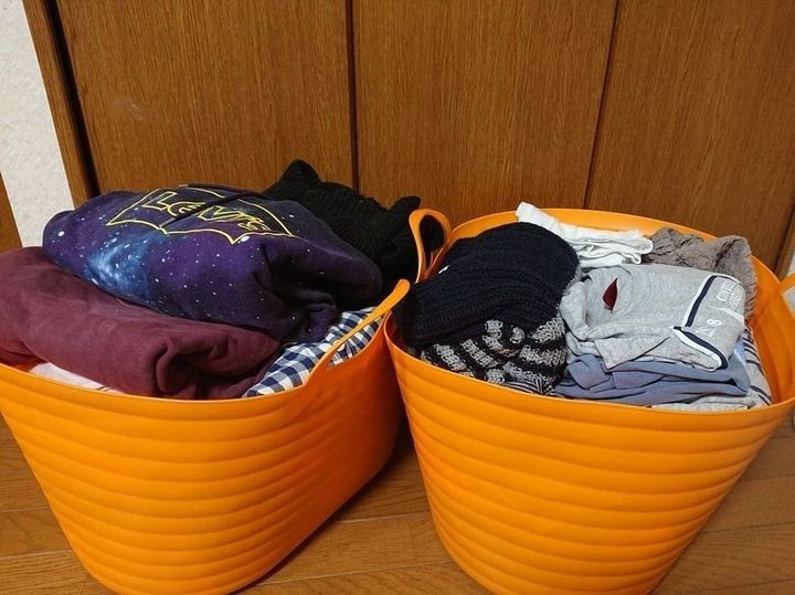 これを各部屋に持って行って片付けたり、時間がない時はとりあえずかごに入れたまま別部屋に置いておきます。