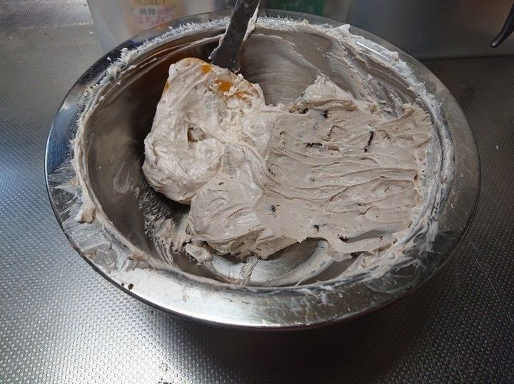 クリームチーズは室温に戻しておくと扱いやすいです。もし冷蔵庫から出してすぐ使いたいなら袋から出して少しレンチンするといいかもしれないです(←レンチンしすぎるとドロドロになるので気を付けて)。