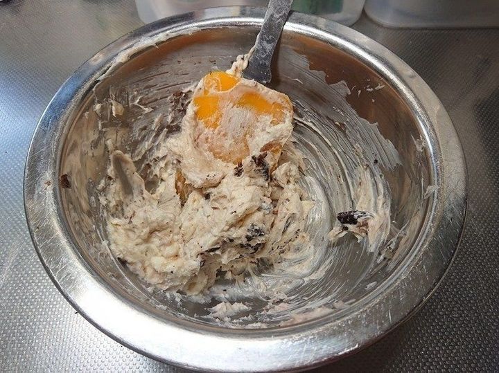 綺麗に混ざったらビスケット(一袋分)を粗く砕いて混ぜる。
