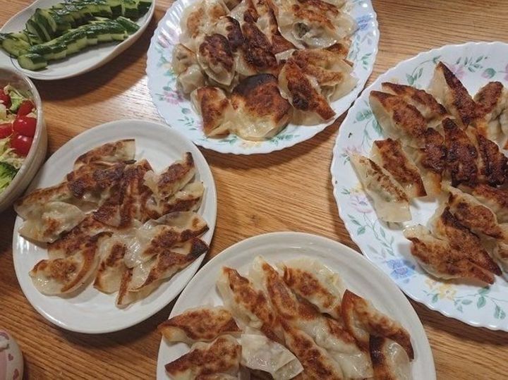 息子のリクエストで餃子を作りました。30個包んで…あとは子供たちに任せました(笑)