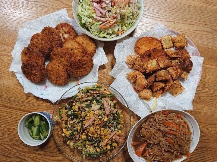 冷蔵庫に少しずつ残っていた冷凍の揚げ物を全部揚げてしまいました。